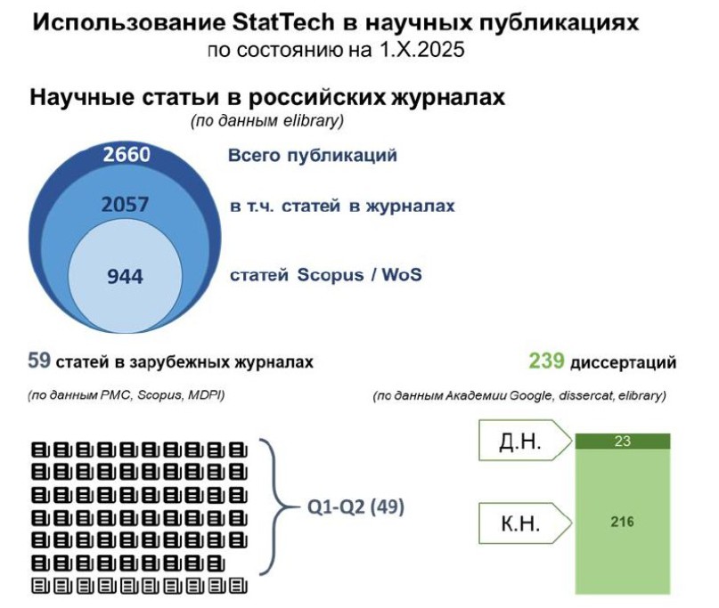 Самое главное — запущена реферальная программа! С её помощью можно будет получить большие скидки на приобретение доступа к StatTech. Вплоть до 100% от её стоимости! А ещё добавлены новые инструкции — по линейной и логистической регрессии, ROC-анализу, сравнению связанных групп (анализу до-после). Подробную информацию о новых функциях читайте по этой ссылке.