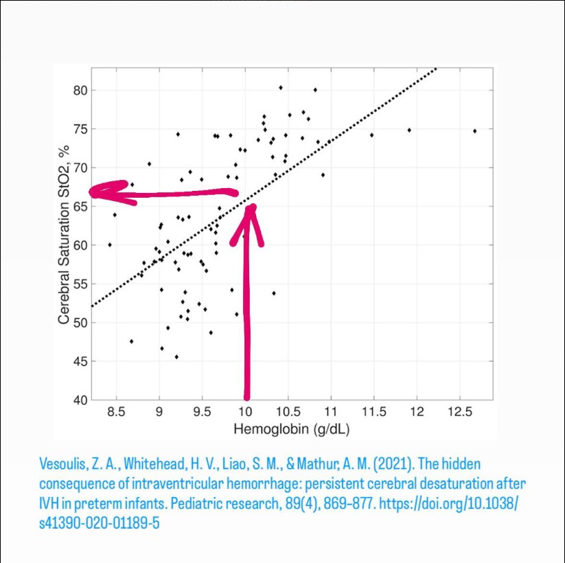 Авторы получили с помощью парной линейной регрессии модель зависимости сатурации тканей головного мозга от содержания гемоглобина в крови. То есть мы измеряем у ребенка уровень гемоглобина — это Х, и делаем выводы об Y — церебральной сатурации.